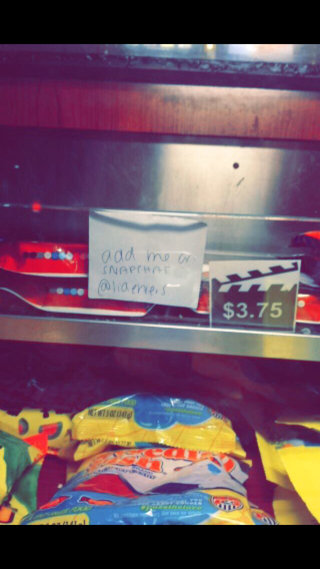 Lia went to the local Hanover movie theater and made sure an “add me on Snapchat @liaehlers” paper found its way into the candy bar display. People from all over Hanover were seeing this name everywhere!