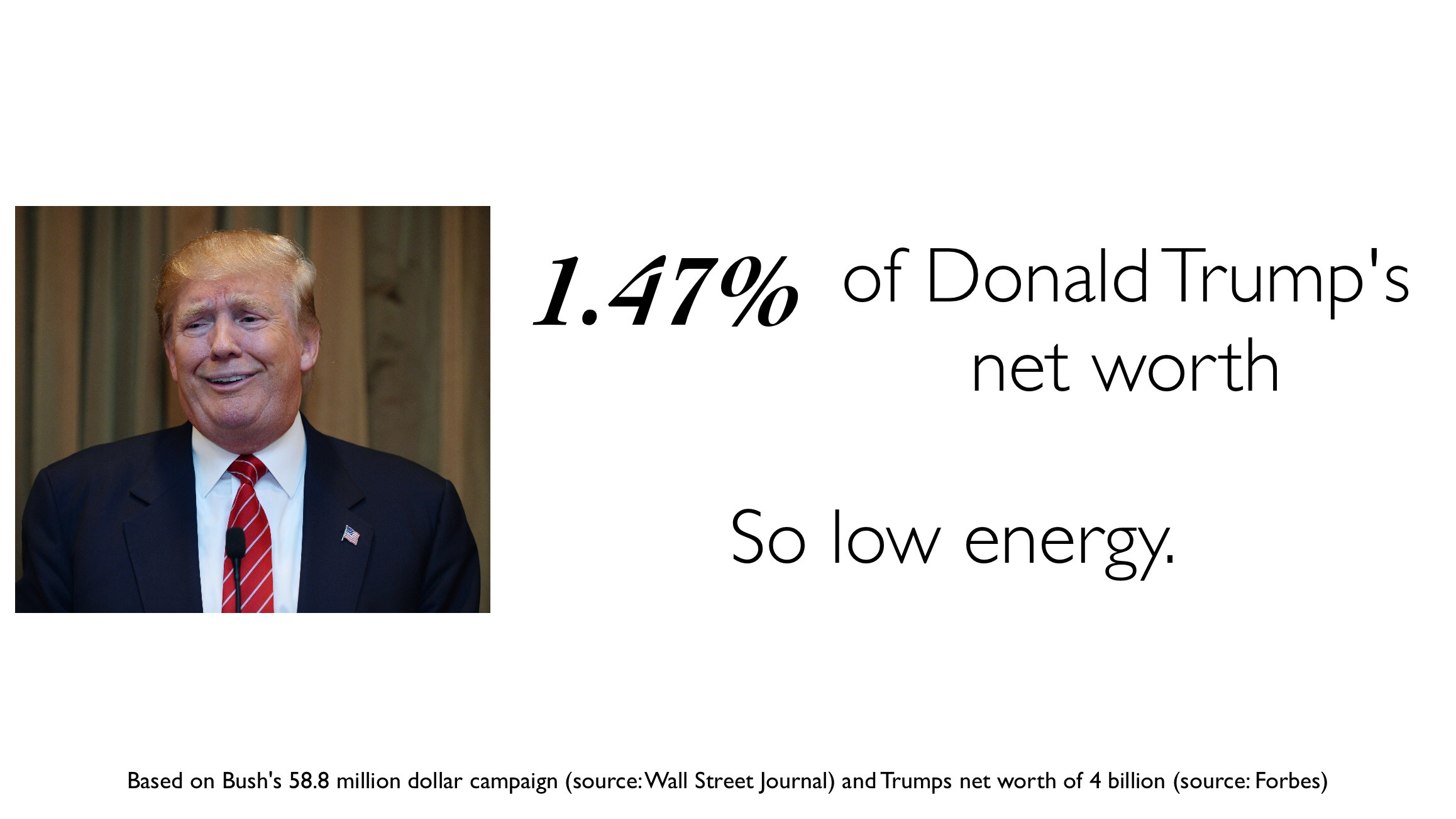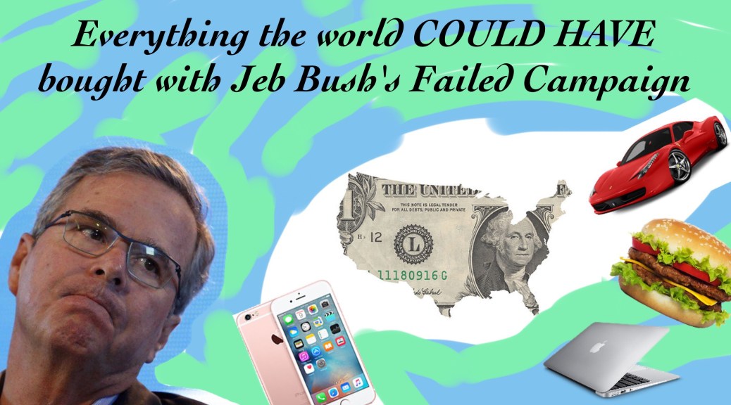 Jeb Bush is now yesterday’s news, but nobody seems to have talked about what it took to get his presidential campaign off the ground. Bush, the former governor of Florida and brother of President George W. Bush, spent $58.8 million on his campaign (including super PACs and donations). That’s almost five times as much as Hillary Clinton has spent! Here’s a breakdown of what other things could have been bought with that $58.8 million . . .