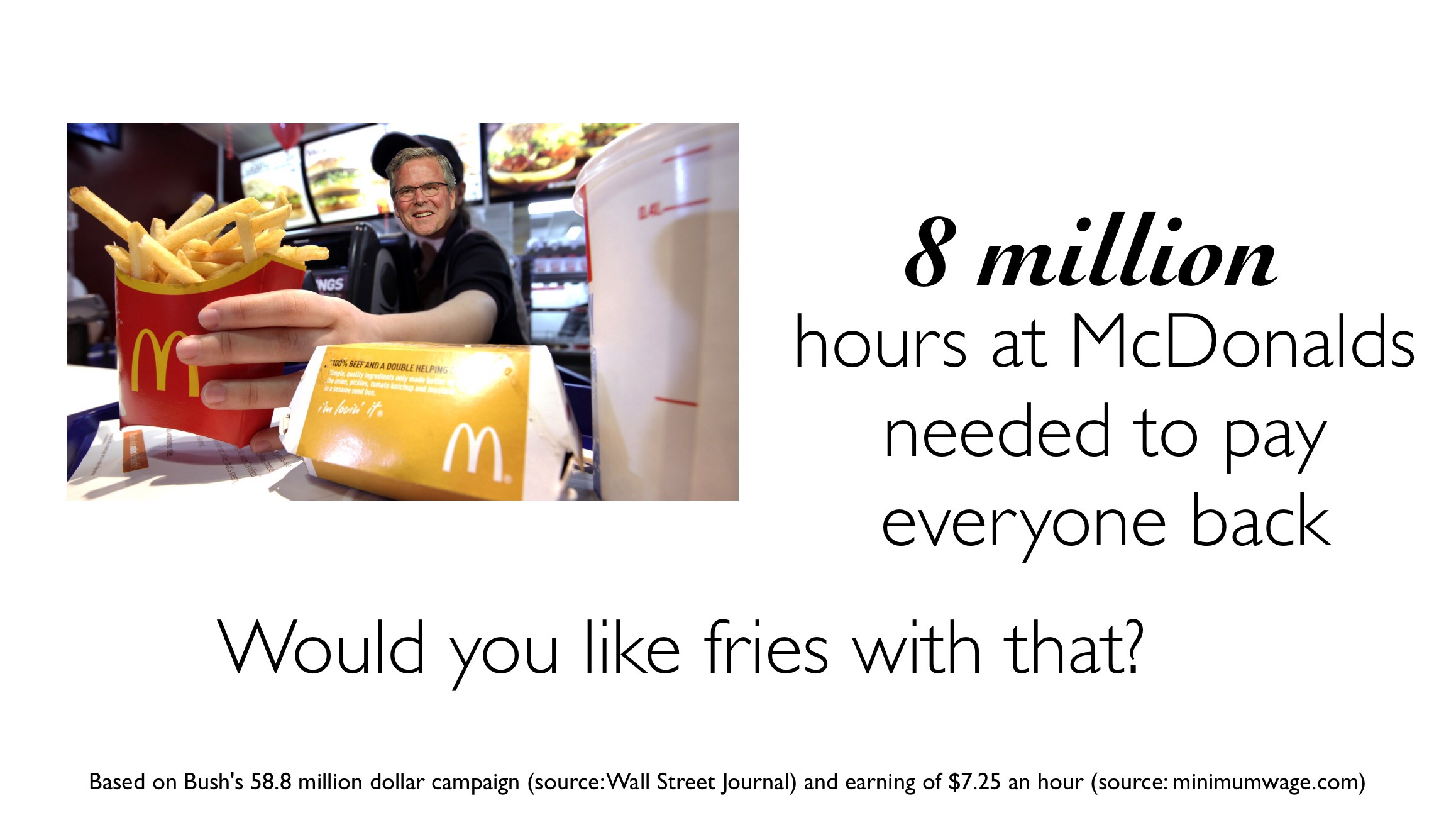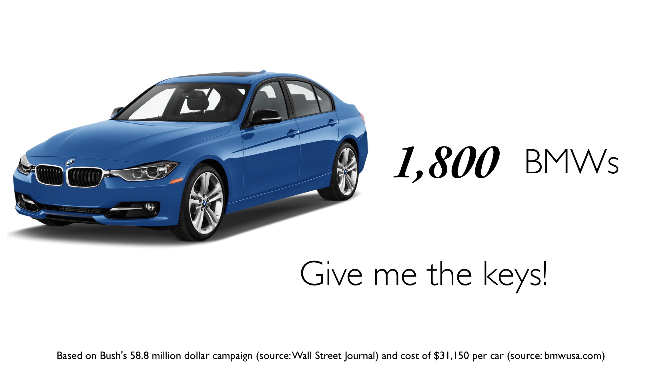 Hopefully this fun little comparison has made you realize how expensive — and potentially wasteful — a political campaign can be.