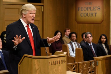 One skit was based on Trump going on a TV court show to fight the judges who overturned his travel ban. (Remember his tweet “See you in court” after the decision.) The show criticized him for being a “TV President,” and had the judge in the courtroom wishing for one day without “a CNN report scaring the hell” out of her.