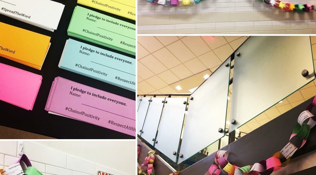 Partnership in Art students, led by Mrs. Curley, asked the student body and faculty at HHS for help to Spread the Word to End the Word. By signing a chain link, HHS pledged to show respect, value, accept, and include everyone. The links were attached together and hung in the cafeteria March 7 to show how embracing our differences connect us all.