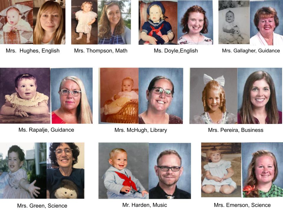 After a week of speculation, we have the winners of The Hawk’s Guess Who contest. Congratulations to student Kacey Hillier and teacher Ms. Nixon for leading with eight correct matches. They each will receive a $10 Dunkin Donuts gift card. More than 50 staff members and students entered, and the wrong answers were more fun than the right ones! See the correct matches below. Thanks to all the teachers who submitted photos and participants who joined in the fun.