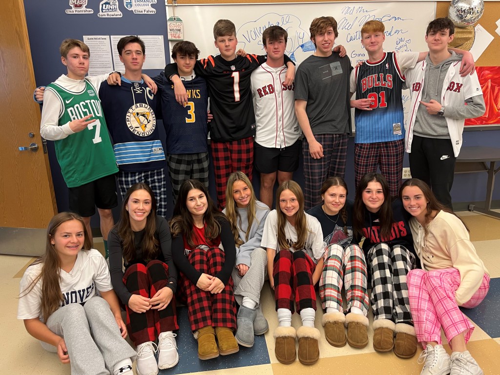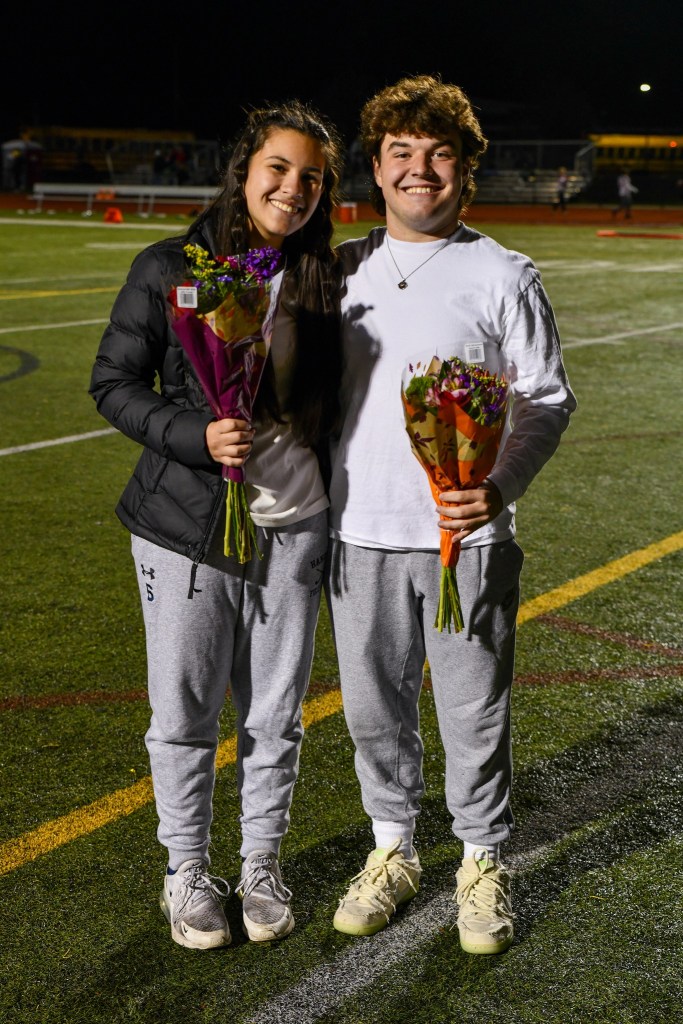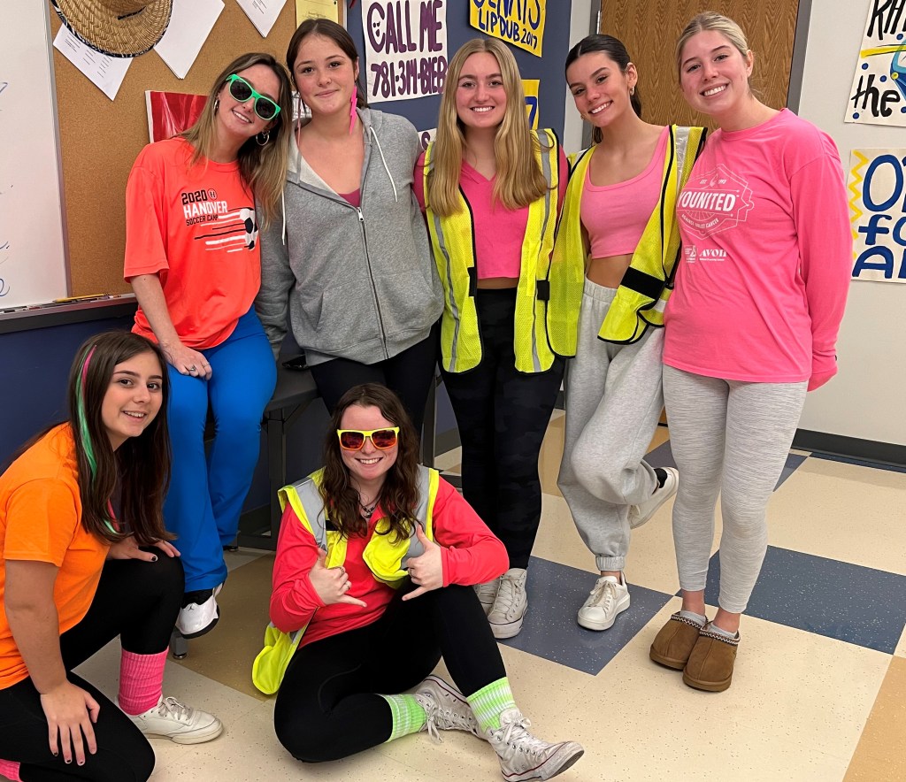 Hanover High’s school spirit was on full display in the week celebrating Homecoming. From Oct. 24-28, students rocked red, white and blue and their brightest neon, most comfortable jammies, favorite jerseys and coolest tropical gear for four days of themed dress-up. They then busted ear drums at the Friday pep rally before coming together to watch the football team trounce North Quincy 42-0. Homecoming included senior night for football and cheer, and the crowning of Jimmy Godin and Sophia Marshall-Pelayo as king and queen.