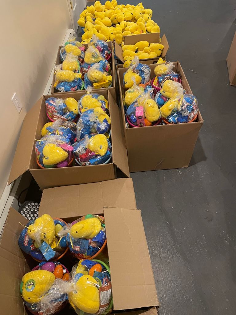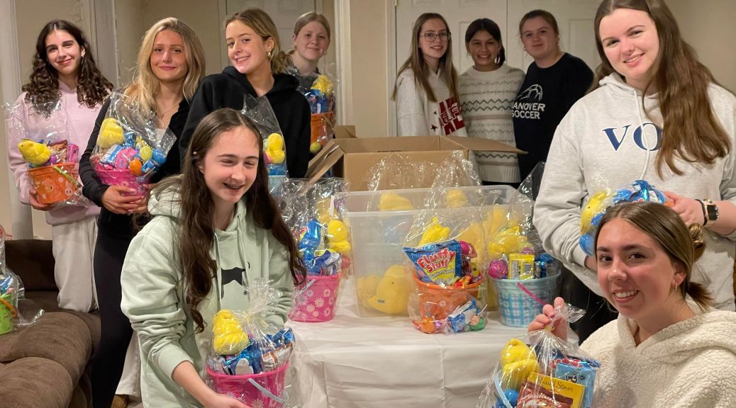 It may feel rainy all the time lately, but the HHS Outreach Club is bringing sunshine to local families. Members this week put together 100 treat bags for senior citizens and veterans who receive Meals on Wheels deliveries through the Hanover Council on Aging. They also made 72 Easter baskets for children who live in shelters run by the Friends of the Homeless of the South Shore as well as clients of the Hanover Food Pantry.
