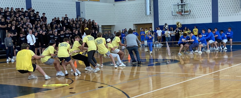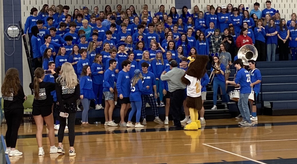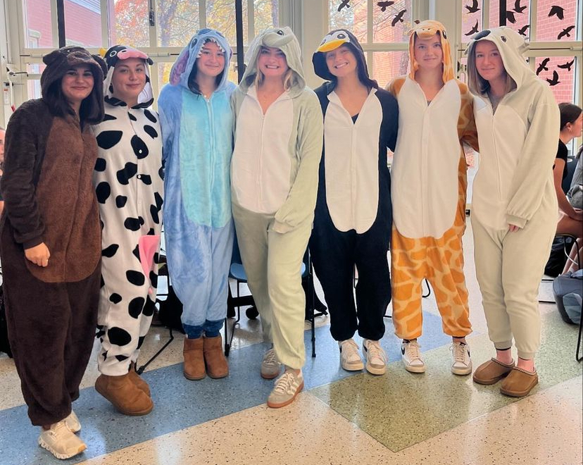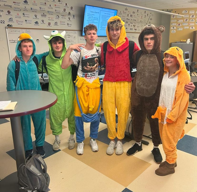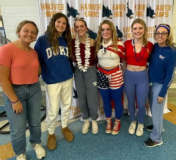 Hanover High students went all in for Spirit Week and Homecoming, held Oct. 28-Nov. 1. The costumes for the four themed days included red, white and blue; jammies and jerseys; ‘On Wednesdays, we wear pink’ from the movie Clueless; and Halloween costumes. The Junior Class won the pod decorating contest with Jungle Juniors, and students wearing their class colors crowded into the gym for a pep rally that featured riotous games and friendly trash talk.