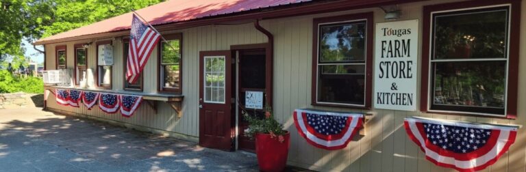 The Tougas Family Farm Store and Kitchen offers a one of a kind shopping experience. This farm store sells picked fruit, jams, fruit pies, fruit crisps, and homemade apple cider donuts made from fresh apple cider.