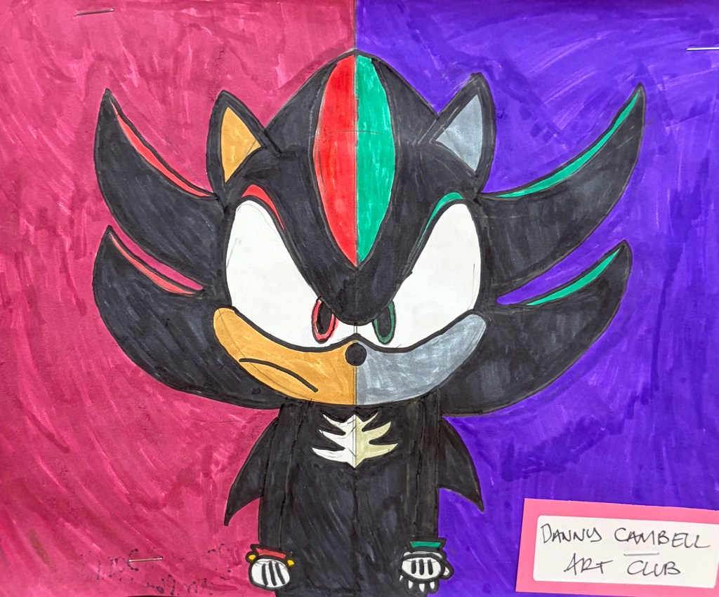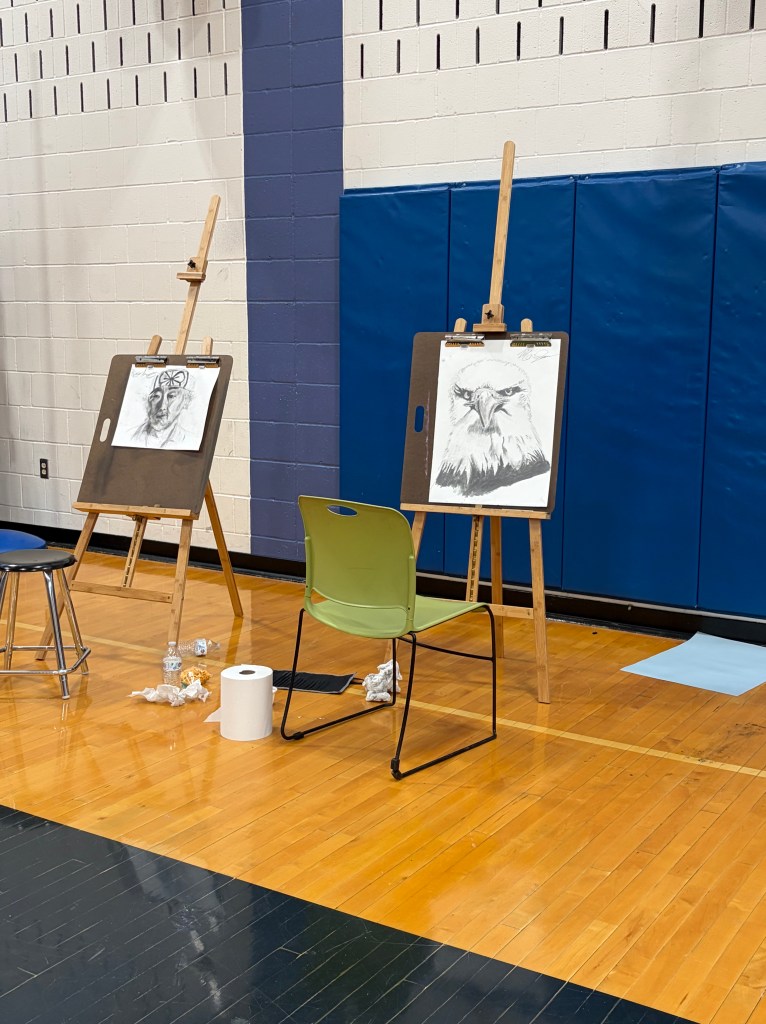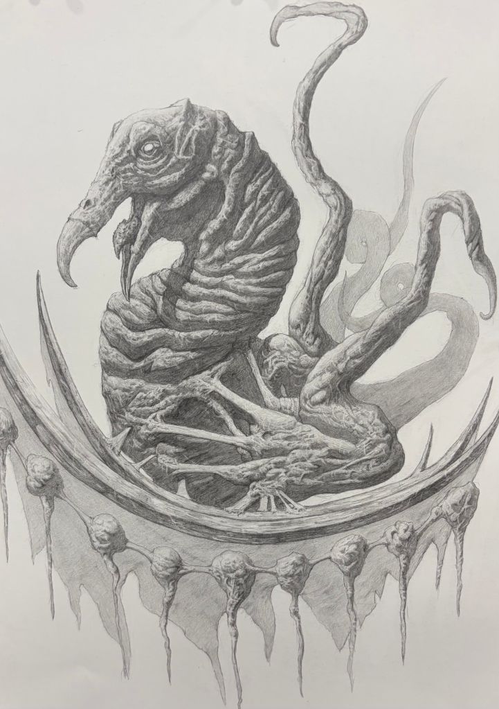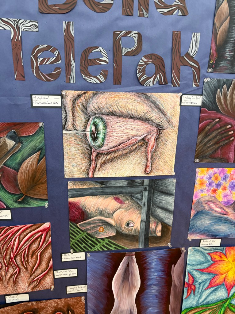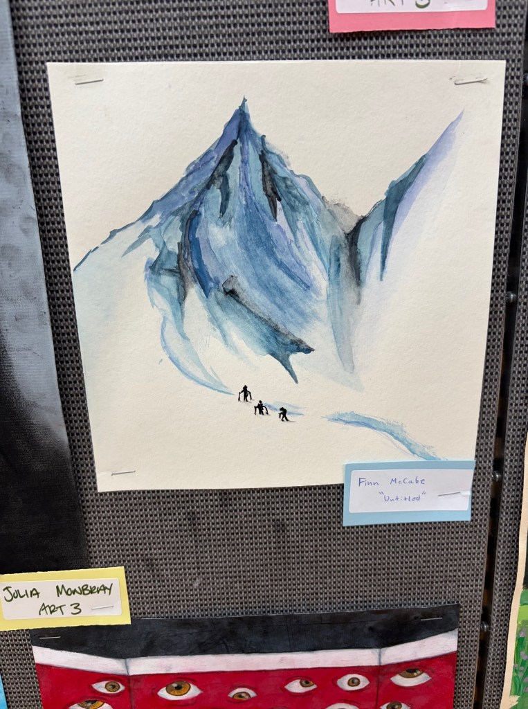 Another impressive display was presented by Owen Cleary, a junior in AP Art. Owen captivated viewers with his hyperrealistic depictions of supernatural creatures, having spent days perfecting each piece to the most minute detail. These pieces were inspired by some of his favorite video games and horror films.