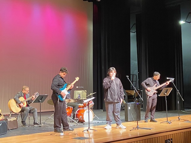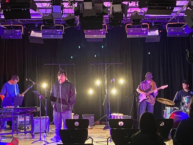 During the festival, students from the elementary to high school level shared the spotlight as they presented their artwork and musical performances to the community. On the main auditorium stage, large-ensemble performances included “Joy Revisited” by the HHS Symphonic Band, “900 Miles” by the HHS Chorus and Vox, several songs by the Cedar/Center Combined Choir, and a rousing set by the HMS Jazz Ensemble. The HHS rock band Altitude closed out the night with a cover of Tom Petty’s “Free Fallin.” On a second stage in the HHS media room, small collections of student musicians came together to perform. Highlights included a performance by the cast of Shrek Jr. and the band To Be Determined’s rendition of “Champagne Supernova” by Oasis. Another unforgettable performance was presented by junior Finn McCabe, who played his own original piano piece, titled “The Least of These,” which was inspired by his Christian background and love for the B-flat major.