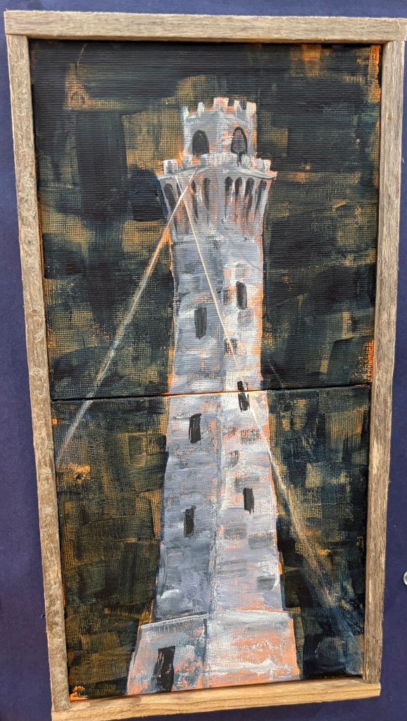 One AP Art student, junior Jenna Clasby, devoted her work to the people who have a special value in her life. Made from a mix of colored pencils and oil pastels, Jenna’s self-portraits showcase her childhood journey and values. Junior Siena Oliver, another AP Art student, created a portfolio with a similar emphasis on childhood memories and nostalgia. One of her favorite pieces is a painting of the Pilgrim Monument in Provincetown, featuring a frame she made with her grandfather using wood fragments taken from the monument’s old fence.
