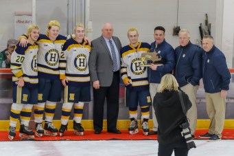 The Cohasset-Hanover girls hockey team fell in the first round of Division 2 action to the Norwood Mustangs, 3-2. Led by captains Alyssa Wilcox, Morgan Lundin, Kate Mccarthy, and Lindsey Beiche, Co-Han was seeded 21st after finishing the regular season 8-8-5. Norwood, the 12th seed, won a hard-fought contest. Hanover’s Jacqui Manning, Anna Tedeschi, and Lily Tobin were named League All-Stars. The Scholar Athlete was granted to Morgan Foley and Lundin was given the Sportsmanship Award.