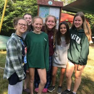 JMG met two activity periods every day. There were five other girls from my camp doing the program with me. It was a lot of taking notes and studying. It was kind of like school in the summer except you were learning to take care not only for yourself in the wilderness but also for a group of younger campers. We had to learn lots of skills for written tests like First Aid and Map of Maine, but the practical tests were the most important. I learned how to swing an ax and build a fire in under 20 minutes with a wet piece of wood. This was all in preparation for a five-day testing camp.