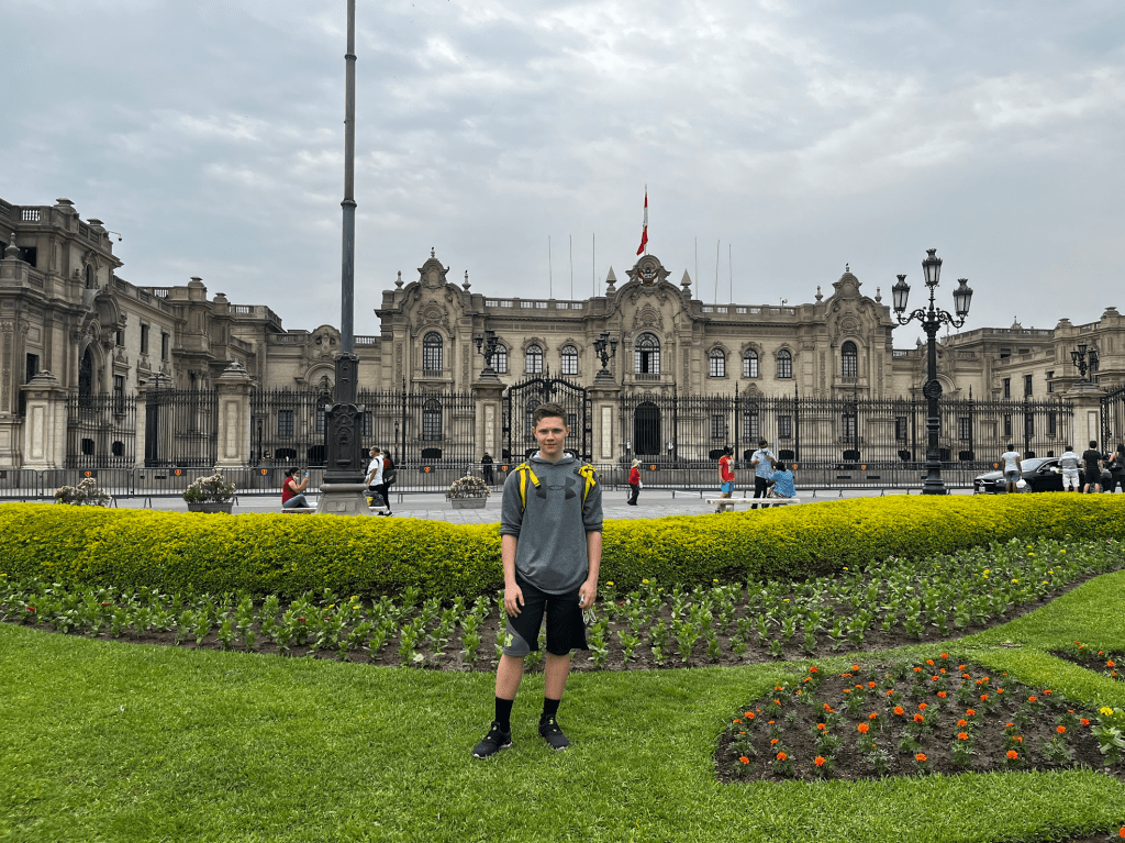 Senior Daniel Leskow in front of the Presidential House, home of Pedro Castillo (current President of Peru)